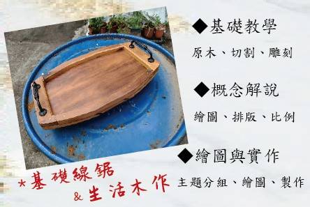 | 線鋸與木作結合-木作托盤 | 1.認識工具用法與操作 2.認識手持線鋸,練習操作方式 |