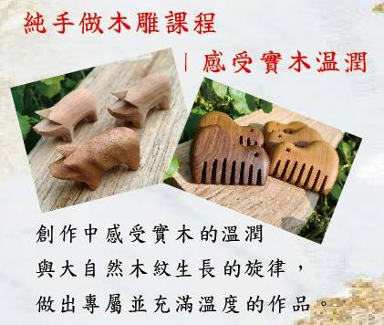 | 基本雕刻練習1-小山按摩梳 | 1.初階雕刻解說與練習與操作,小山按摩梳(半成品)雕刻練習 2.手持線鋸練習 |